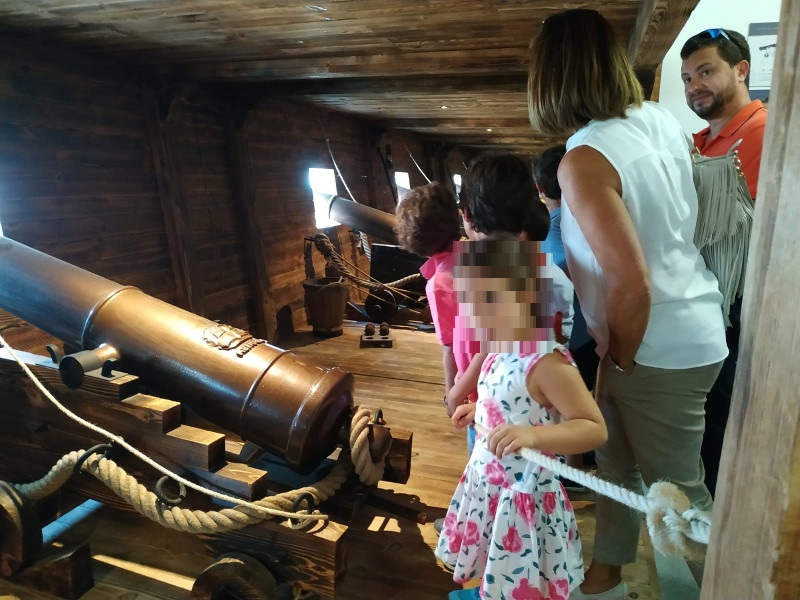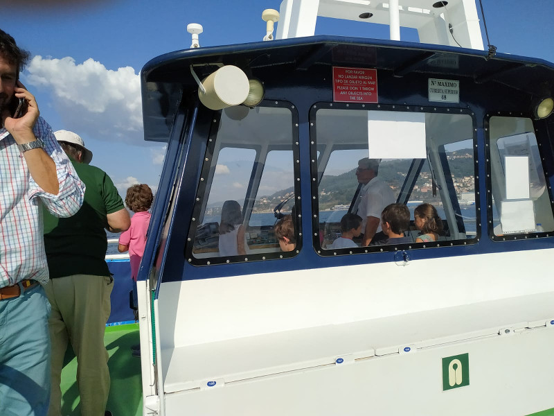 Después de la Junta General, todos los asistentes y sus familias han almorzado en el mismo hotel en un ambiente muy distendido y agradable. Después del almuerzo se ha dado un paseo por la ría hasta desembarcar en Meirande donde se ha hecho una visita guiada por el Centro de Interpretación, el cual posee una sala dedicada al tesoro de Rande y maquetas de barcos de la época, además de una recreación de un barco de guerra por dentro donde los más pequeños han sido los que más han disfrutado.