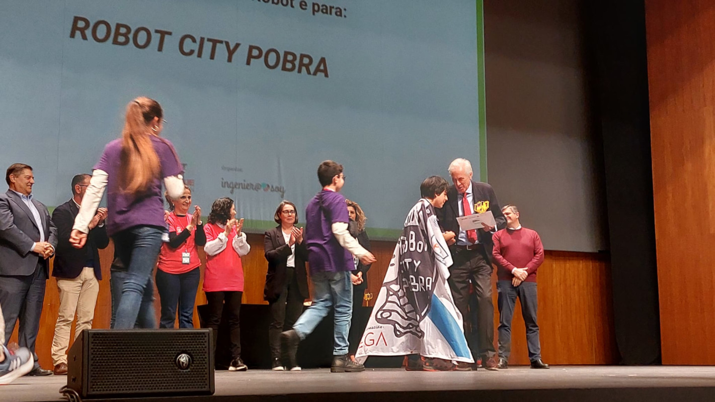 - Premio al Diseño del Robot – ROBOT CITY POBRA de Mega Riveira de Ribeira – Entregado por el Decano Territorial del COIN en Galicia D. Jorge Dahl de Sobrino