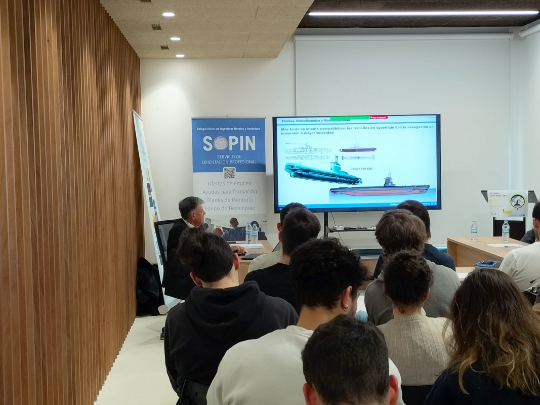 En el día de ayer, tuvimos el placer de recibir al Ingeniero Naval D. Mauricio Álvarez Ortiz para hablarnos sobre «El proyecto, construcción y ciclo de vida de los submarinos». Habíamos reservado una sala que se llenó hasta los topes de alumnos de Grado y Máster de Ingeniería Naval y Oceánica principalmente; además también se contó con la participación de público a través de streaming.