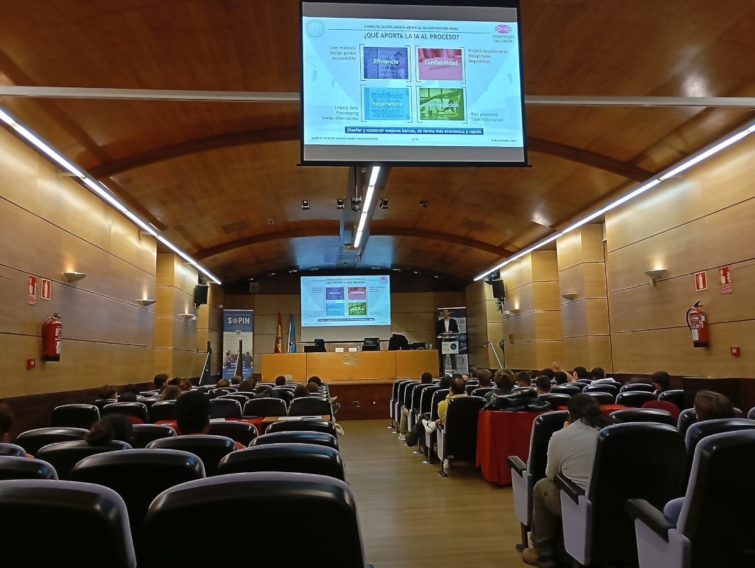 Ferrol, 20 de novembro de 2024.- A delegación territorial en Galicia do Colexio de Enxeñeiros Navais e Oceánicos e a Asociación de Enxeñeiros Navais e Oceánicos de España, en colaboración coa Escola Politécnica de Enxeñería de Ferrol, celebraron no Salón de Actos do Vicerreitorado do Campus de Ferrol, a Sesión AINE/COIN-EPEF “O Impacto da Intelixencia Artificial na Construcción Naval”, impartida polo Doutor Enxeñeiro Naval Rodrigo Pérez Fernández.