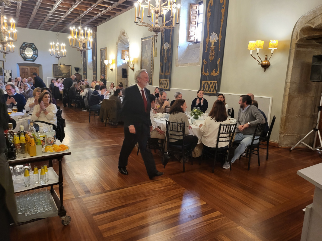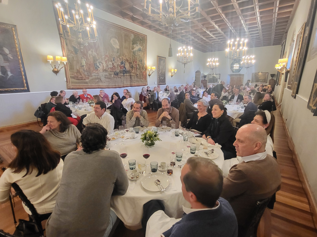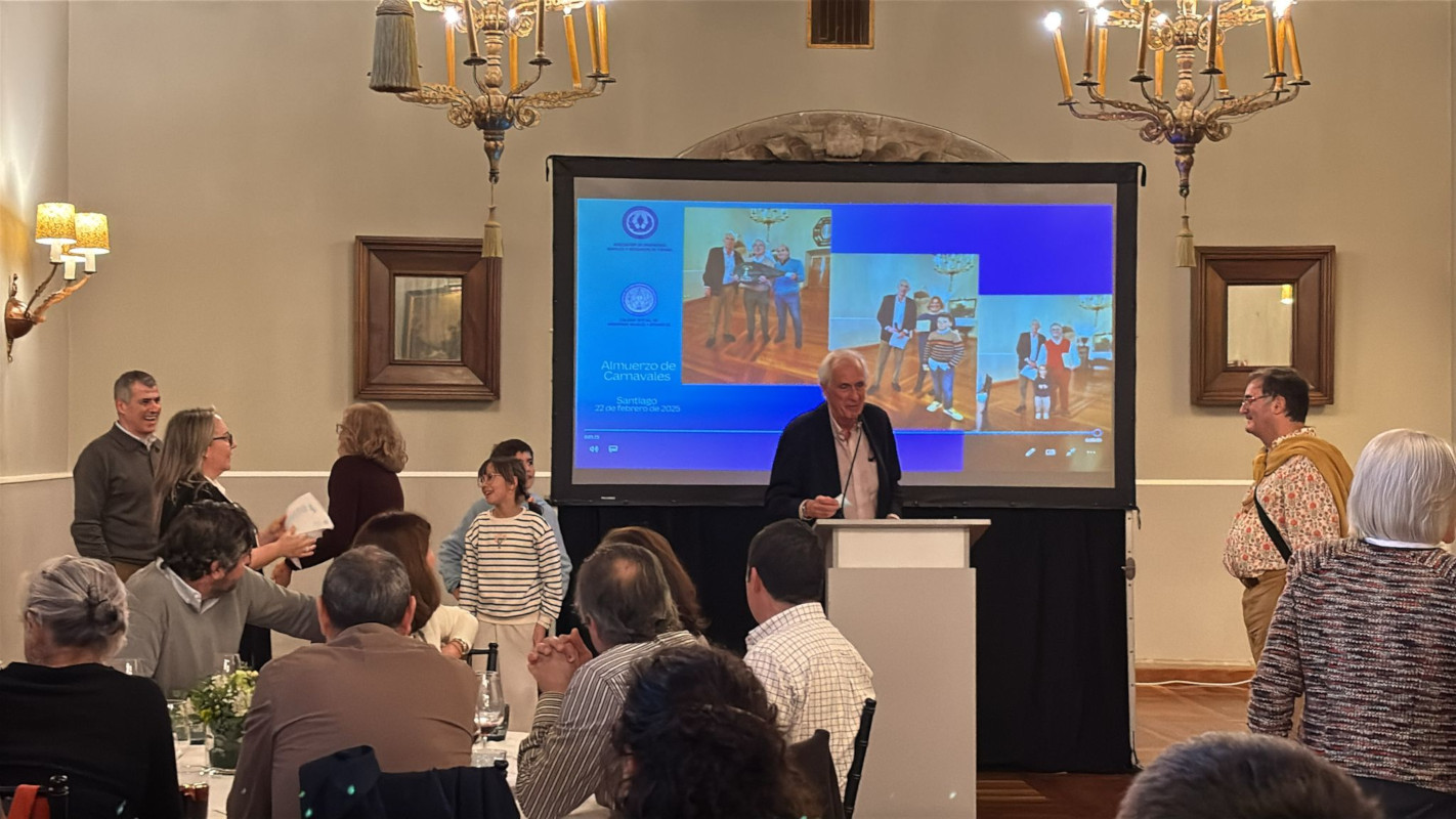 En esta edición el numeroso grupo creció a 83 Colegiados/as y amigos, que compartieron mesa en el majestuoso Salón Real del «Hostal de los Reyes Católicos». Entre los asistentes, se contó con la presencia, una vez más, de la Decana del COIN Pilar Tejo, que fue testigo del habitual sorteo, en el que salieron ganadores/as: