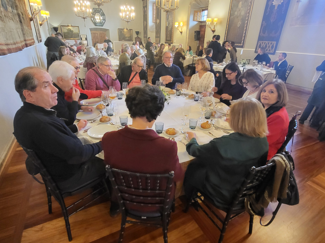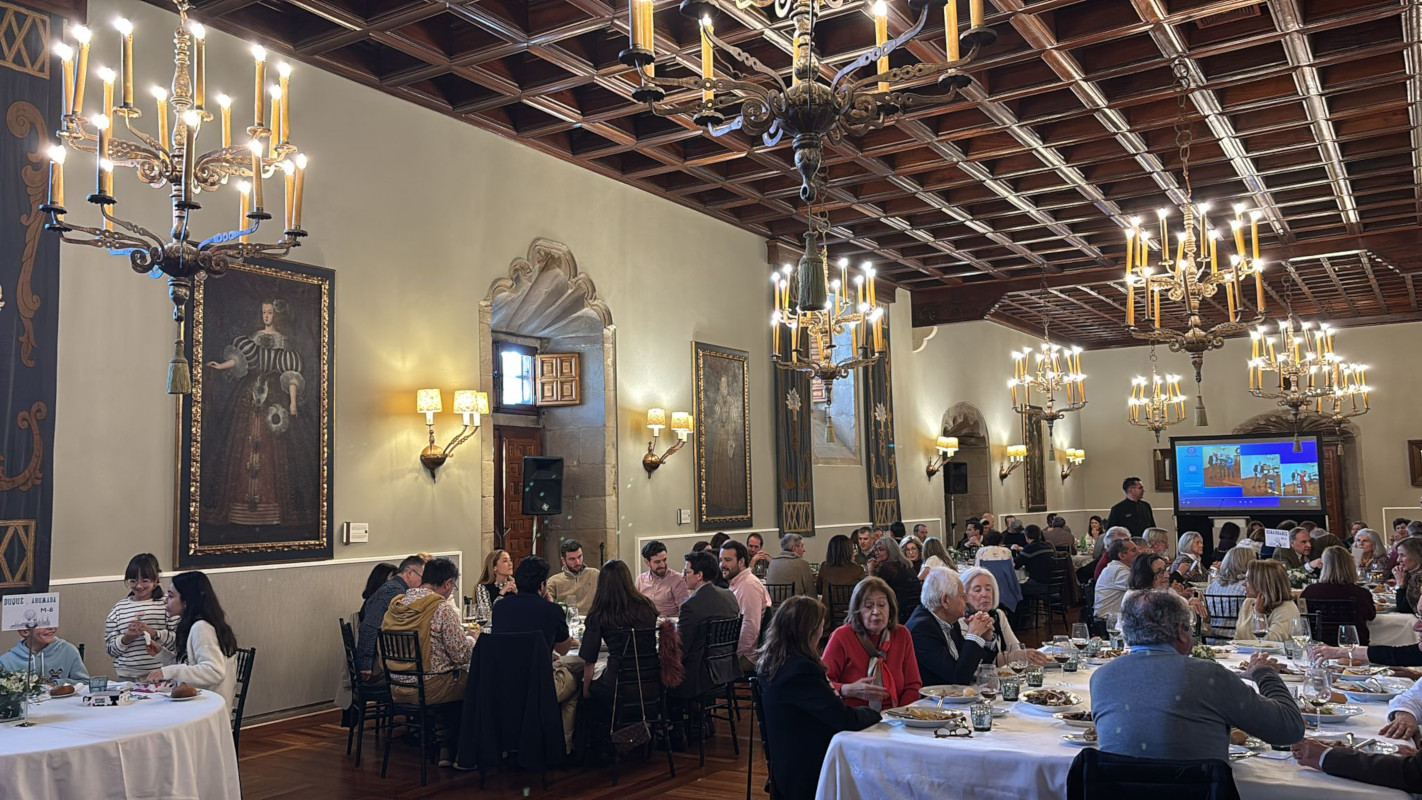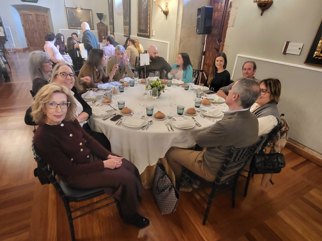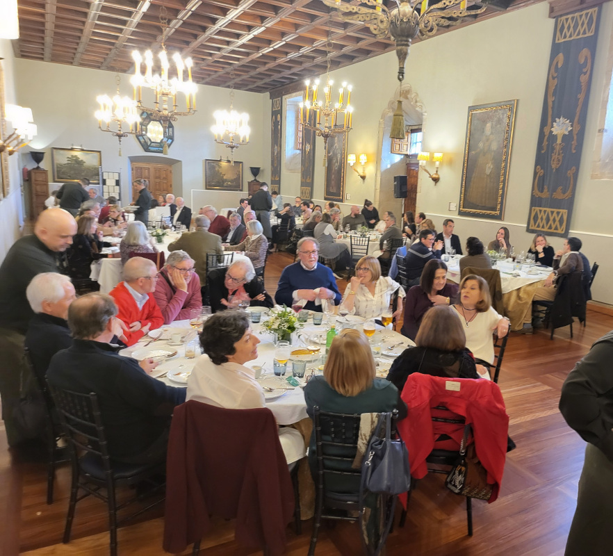 En esta edición el numeroso grupo creció a 83 Colegiados/as y amigos, que compartieron mesa en el majestuoso Salón Real del «Hostal de los Reyes Católicos». Entre los asistentes, se contó con la presencia, una vez más, de la Decana del COIN Pilar Tejo, que fue testigo del habitual sorteo, en el que salieron ganadores/as:
