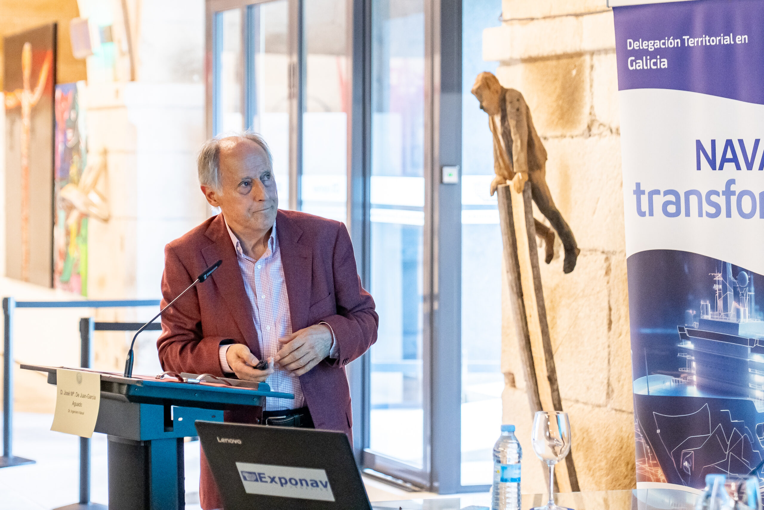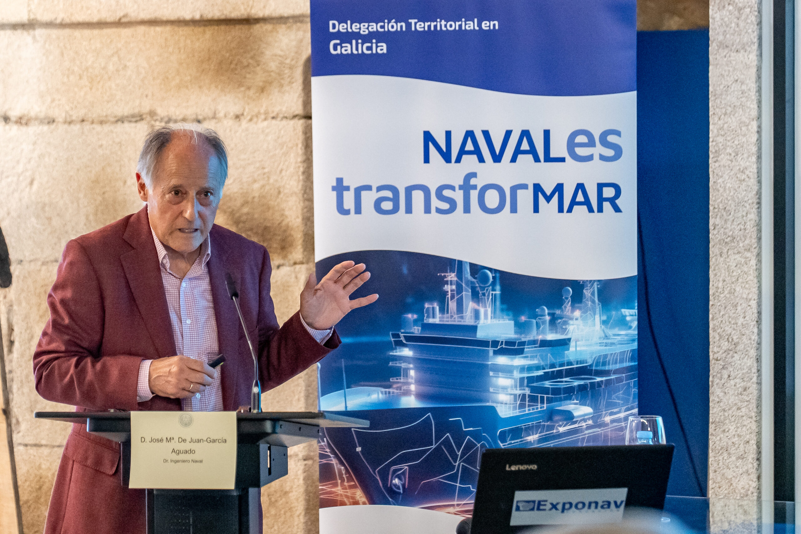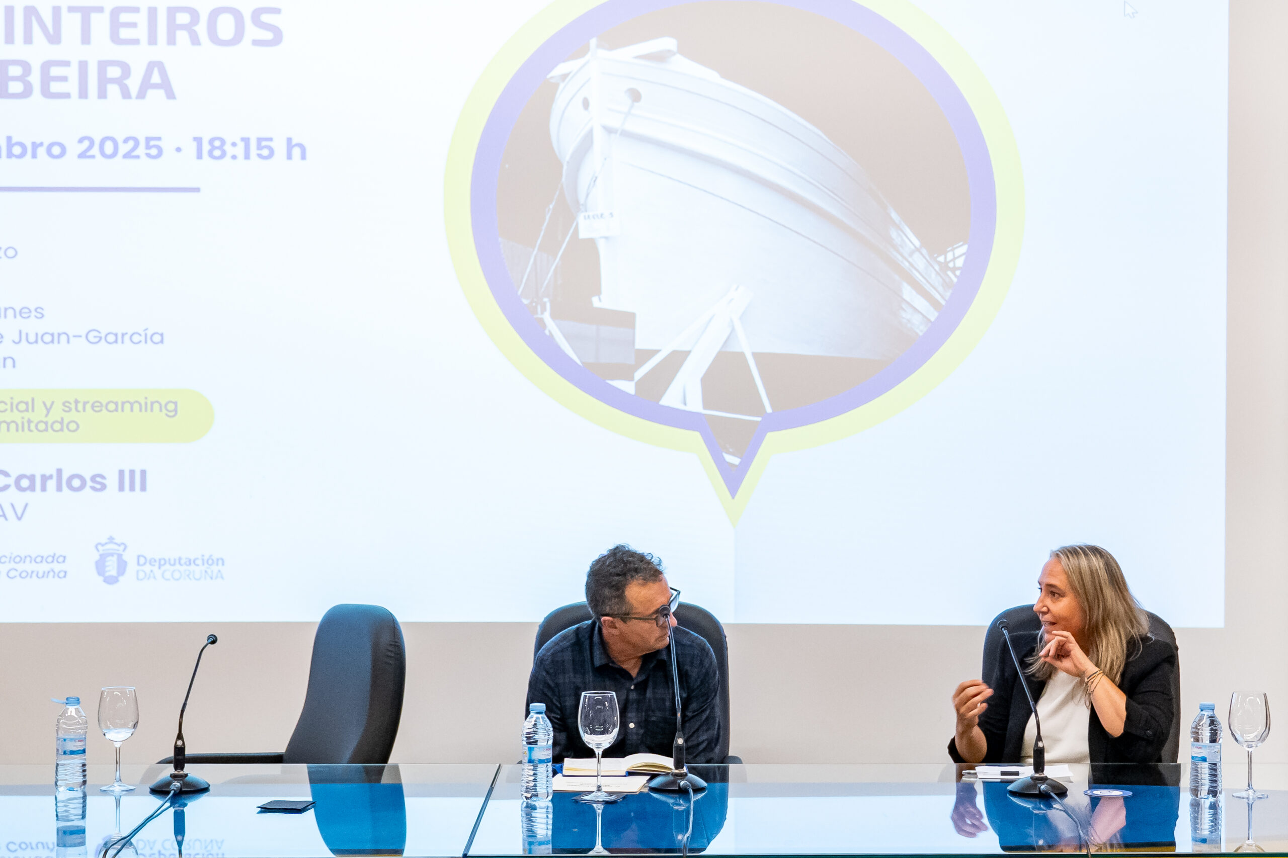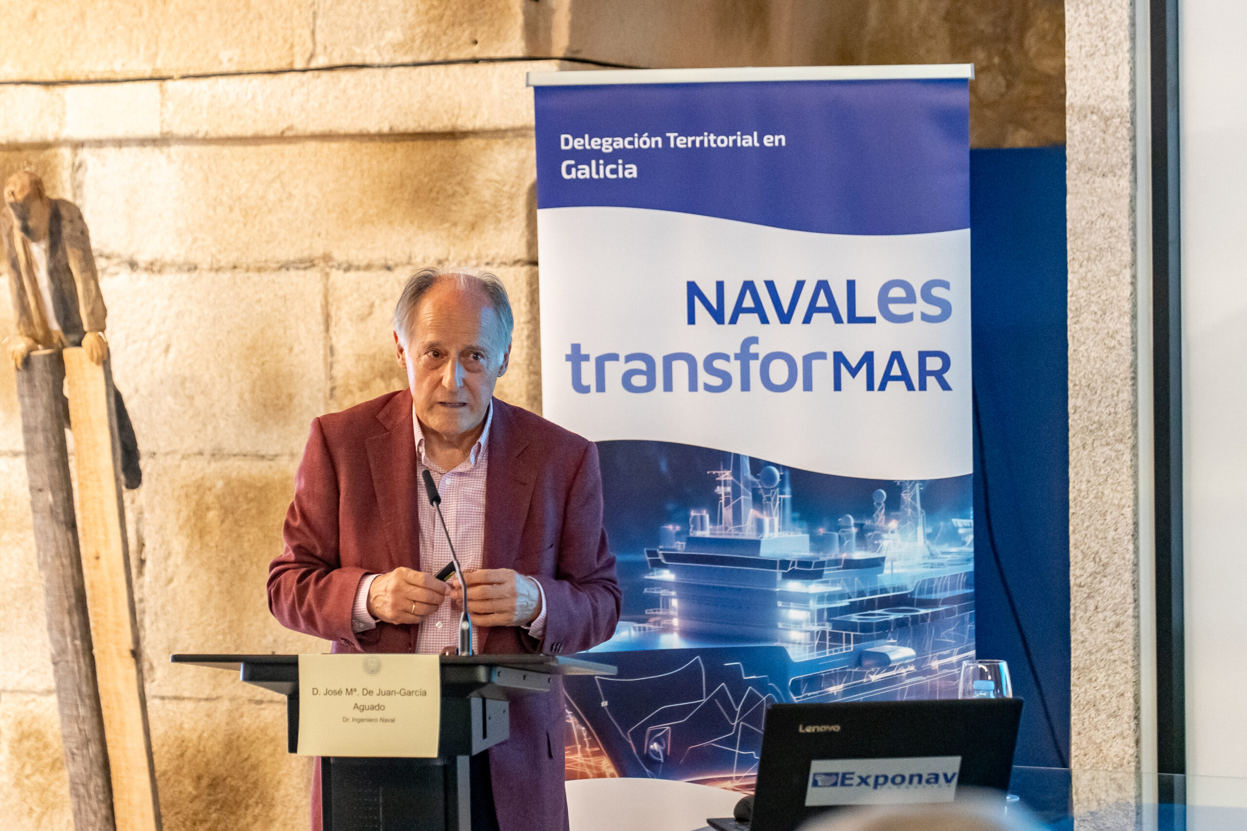 José María de Juan-García, Doutor Enxeñeiro Naval,  iniciou o seu relatorio “A Carpintería de Ribeira na Ría de Ferrol na historia a Carpintería de Ribeira na Ría de Ferrol”, sinalando as dúas frontes nos que se desenvolvía a construción naval en madeira nos séculos XIX e XX en Galicia. Por un lado, os estaleiros, que construían baseándose en planos, tiñan unha plantilla estable nos diferentes gremios e realizaban os montaxes mecánicos nos seus talleres e cos seus propios medios, e por outro a Carpintería de Ribeira artesanal que traballaban en galpóns ou incluso na súa casa, baseándose en medios modelos do casco, rexíase polo sistema de traballadores autónomos e os montaxes realizábanse por talleres mecánicos alleos.