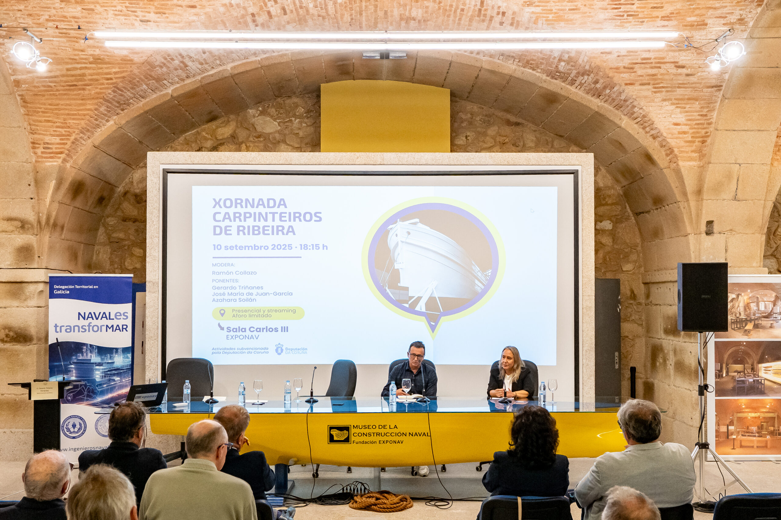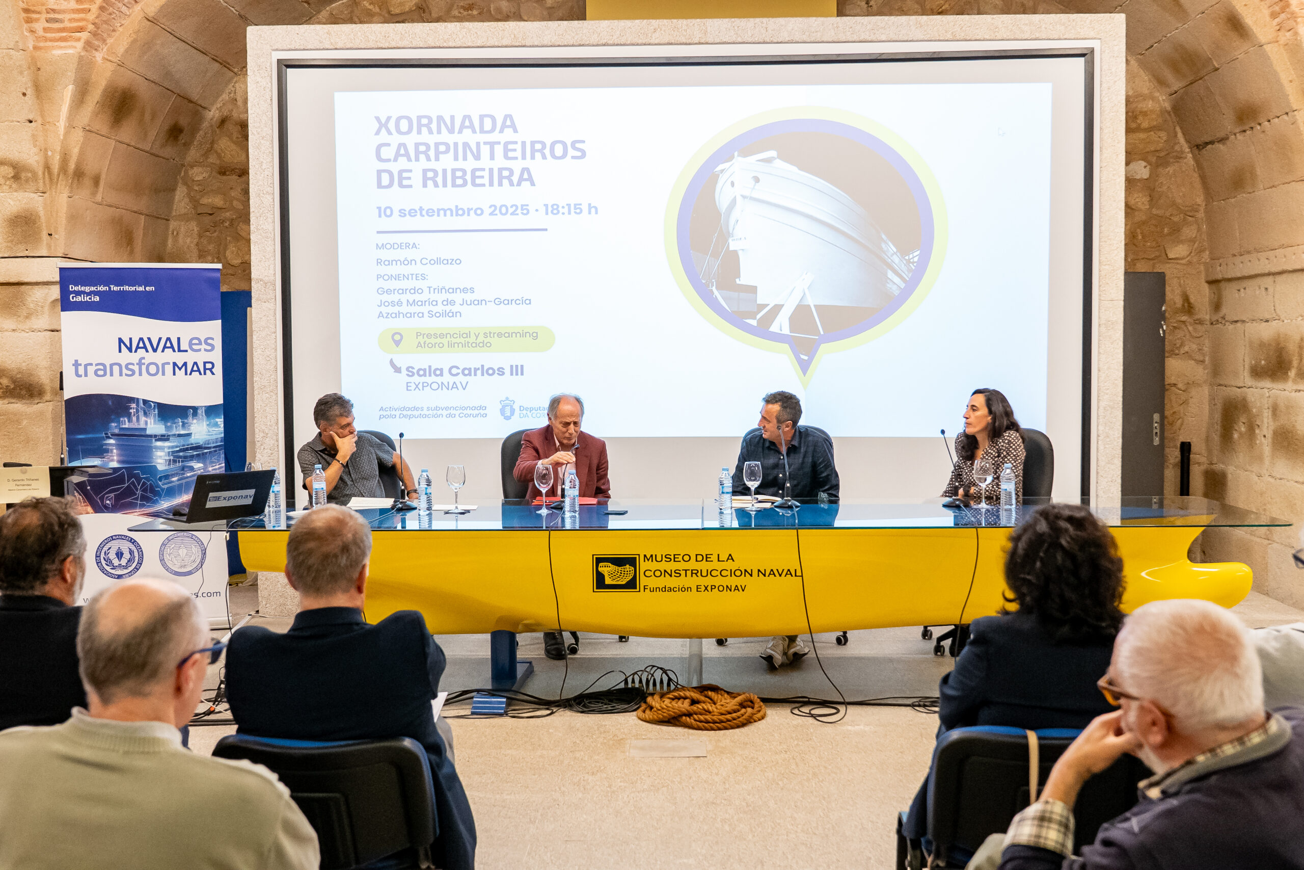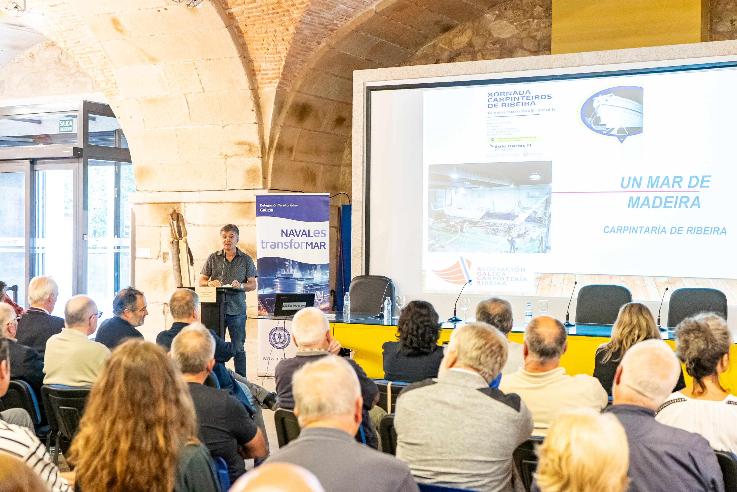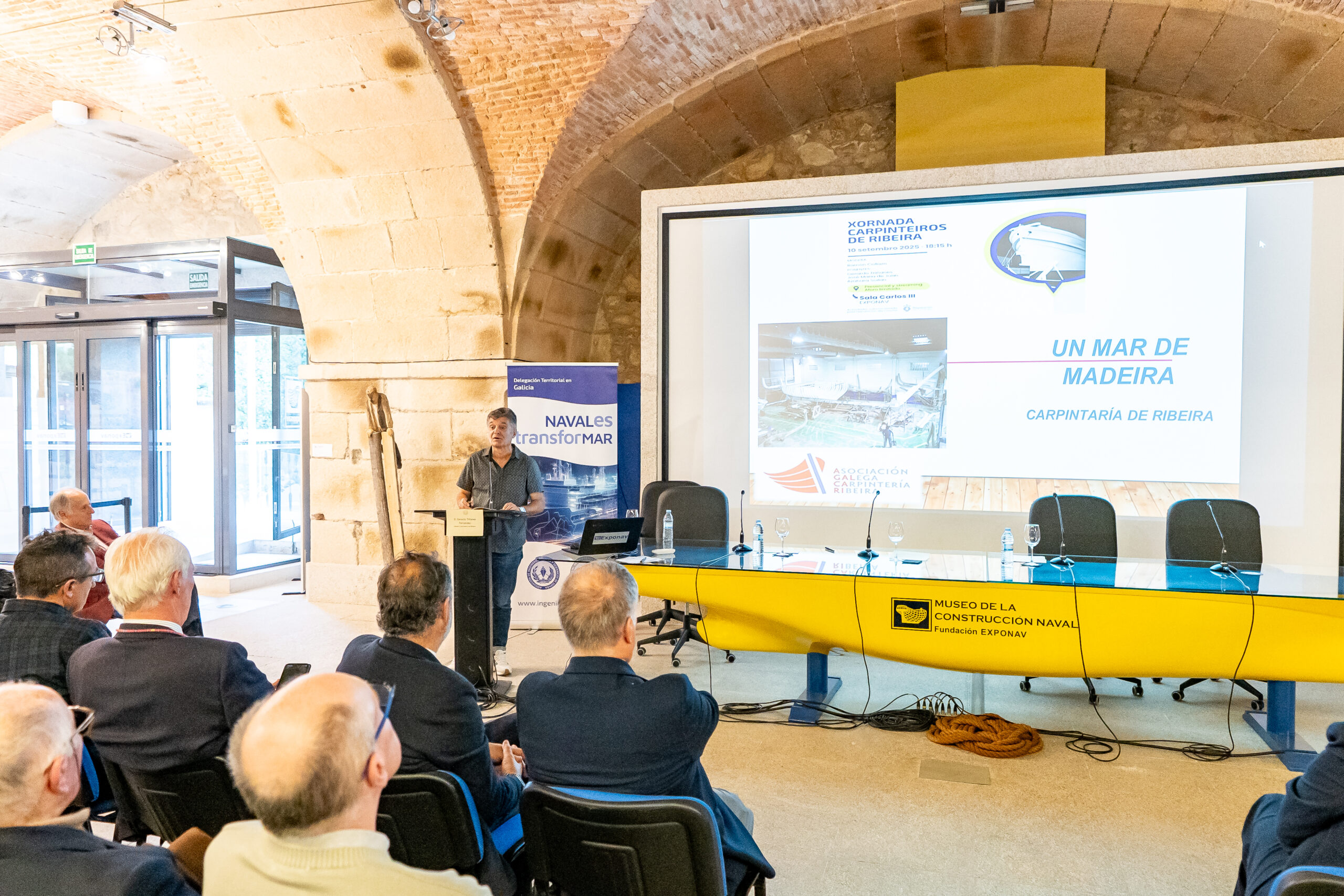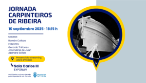 O pasado 10 de setembro e organizado pola delegación Territorial do Colexio e da Asociación de Enxeñeiros Navais e Oceánicos de España, celebrouse na sala Carlos III de Exponav, unha sesión monográfica adicada á Carpintería de Ribeira, gremio que actualmente ocúpase da construción artesanal e reparación, igualmente artesanal, de pequenas embarcacións en madeira, pero que durante varios séculos levou o peso da Construción Naval en España.