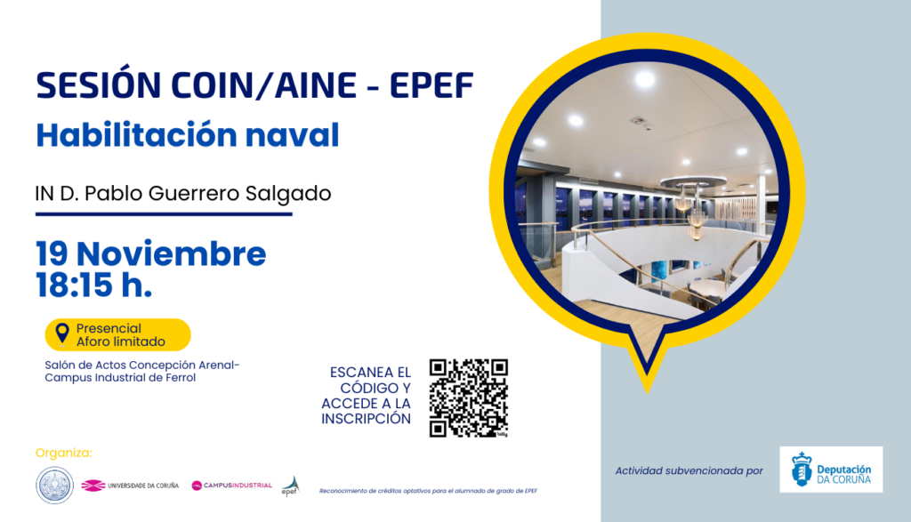 El próximo 19 de noviembre a las 18:15 h., tendrá lugar la cuarta y última de las conferencias que la Delegación Territorial en Galicia del Colegio y Asociación de Ingenieros Navales y Oceánicos, tiene previsto organizar a lo largo de 2025, en colaboración con la Escola Politécnica de Enxeñaría de Ferrol (EPEF).