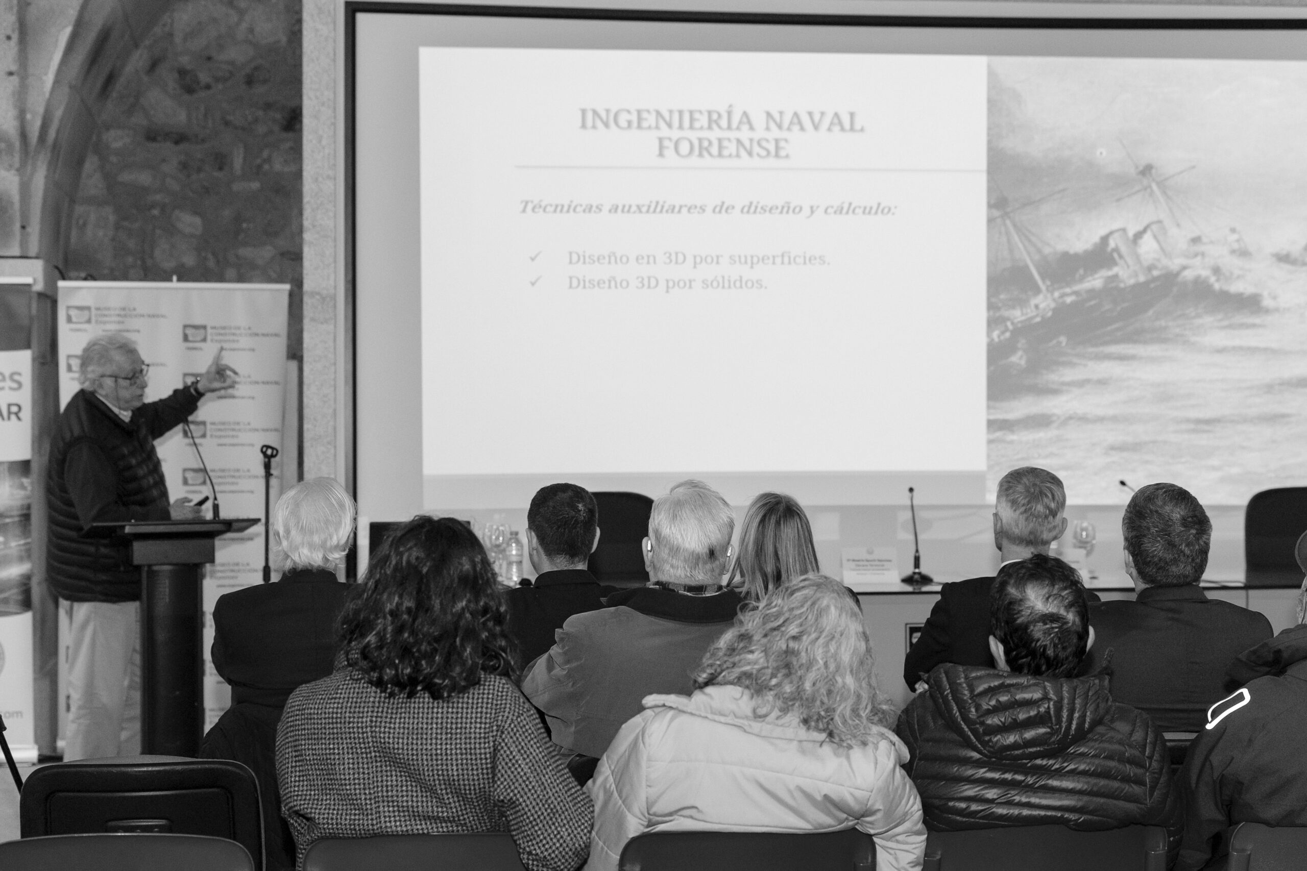 O relator D. Guillermo Gefaell Chamochín comezou facendo unha pequena introdución do que é a Enxeñería Naval Forense, disciplina que combina a enxeñería naval con técnicas de investigación científica, que permite determinar as causas de siniestros marítimos de calquera época.