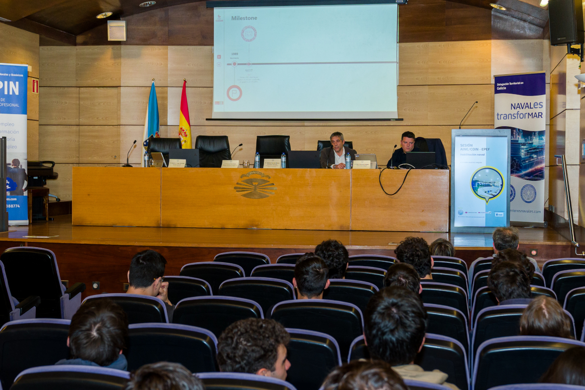 Na tarde do pasado 19 de novembro, tivo lugar a última conferencia do ciclo que a Delegación Territorial en Galicia do Colexio de Enxeñeiros Navais e Oceánicos, organizou ao longo do 2025, en colaboración coa Escola Politécnica de Enxeñaría de Ferrol (EPEF) e subvencionada pola Deputación da Coruña.