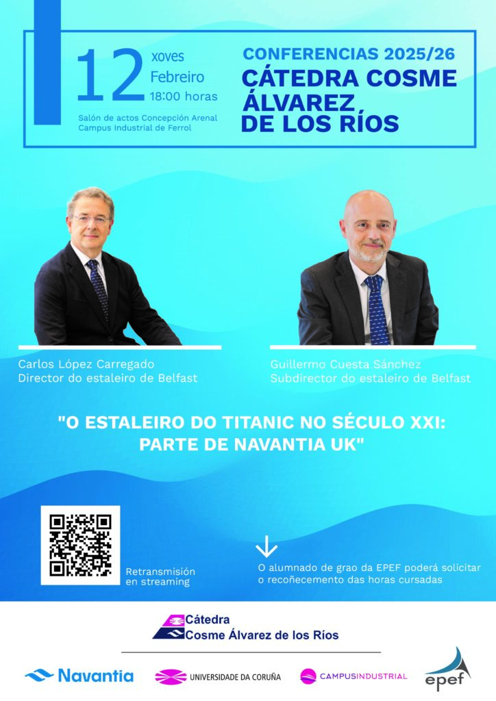 En esta ocasión la temática será «O estaleiro do Titanic no século XXI: parte de Navantia UK» y podrás seguirla por streaming.