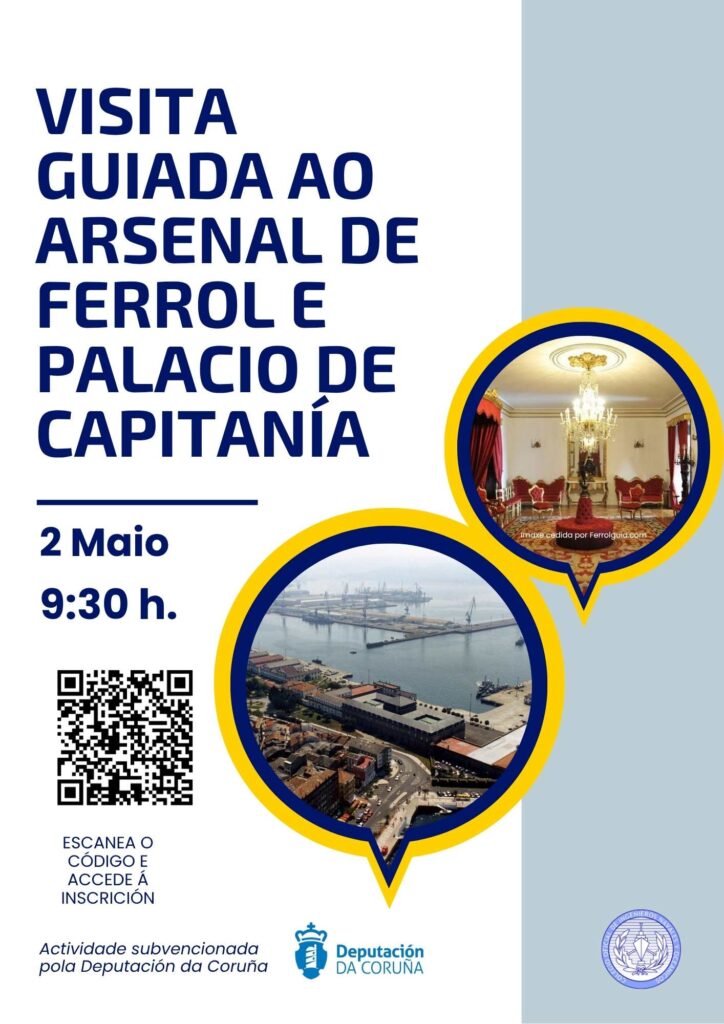 Esta visita está aberta a enxeñeiros/as navais, as súas familias, amigos/as e público en xeral, previa inscrición a través do seguinte FORMULARIO DE INSCRICIÓN ou escaneando o QR do cartel.