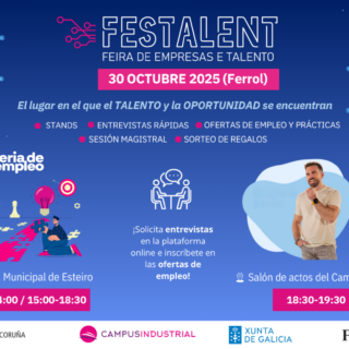 FESTALENT, a Feira de Empresas e Talento organizada polo Campus Industrial de Ferrol (Universidade da Coruña), busca conectar ás empresas co talento universitario e con aquelas persoas en busca de novas oportunidades profesionais. Durante...